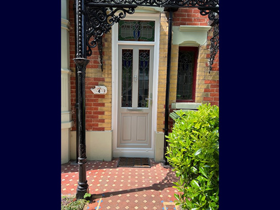 We fit this great UPVC front door with decorative bevels which